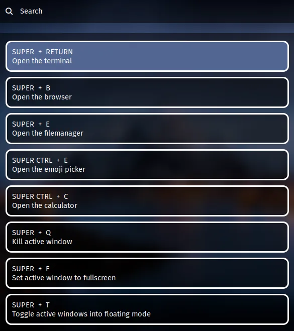 super+ctrl+S 打开ML4W dotfiles 设置应用